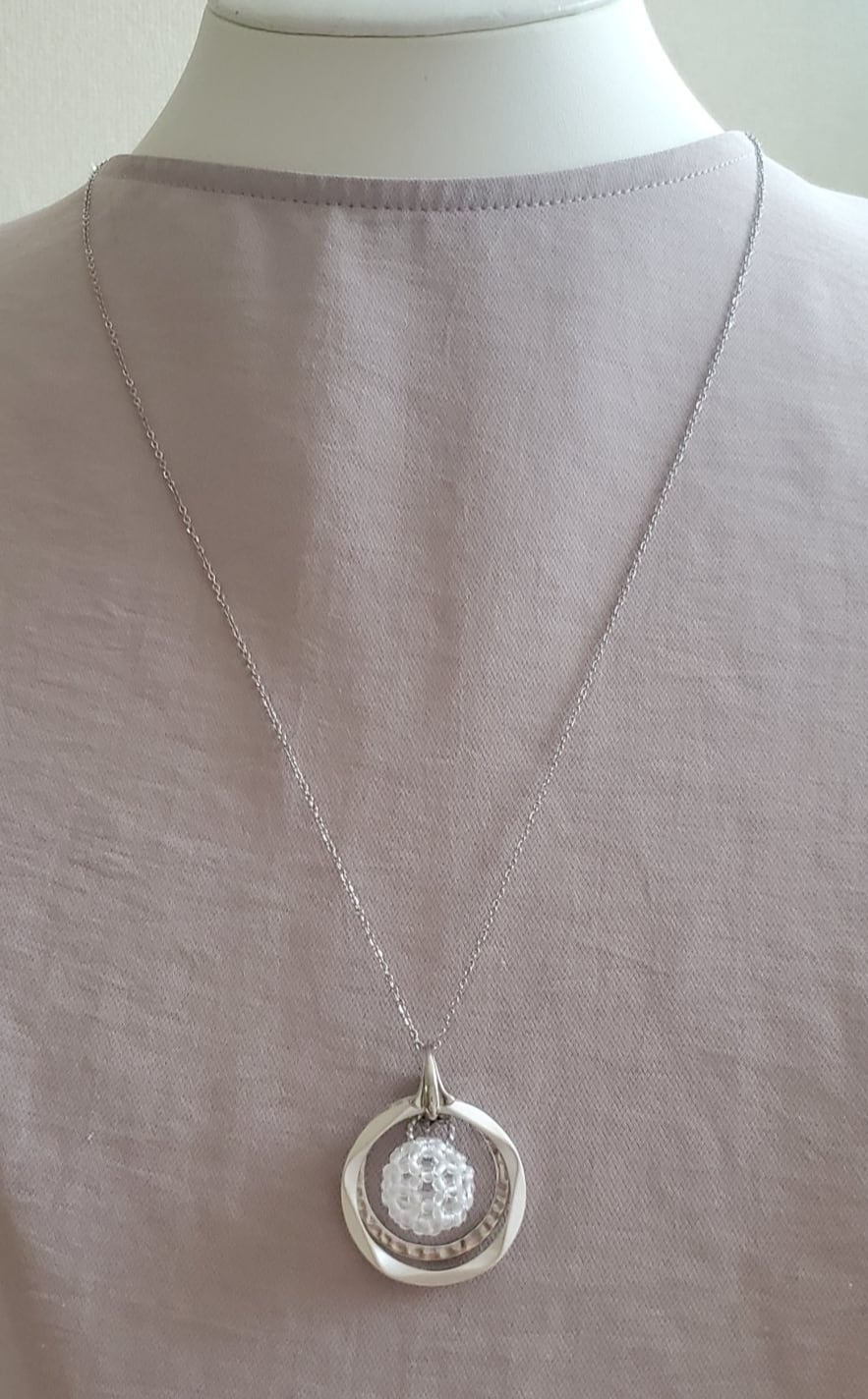 キラキラ輝くリングがゆらゆら揺れて軽やかで心地良いエネルギーを放出するフラーレン水晶デザインネックレス A5ランク最高品質水晶 神聖幾何学フラーレン水晶 直径約2センチ エネルギー強化